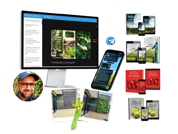 También te daremos el curso completo para crear una huerta vertical en espacios reducidos, con sistema de riego automatizado o programado.